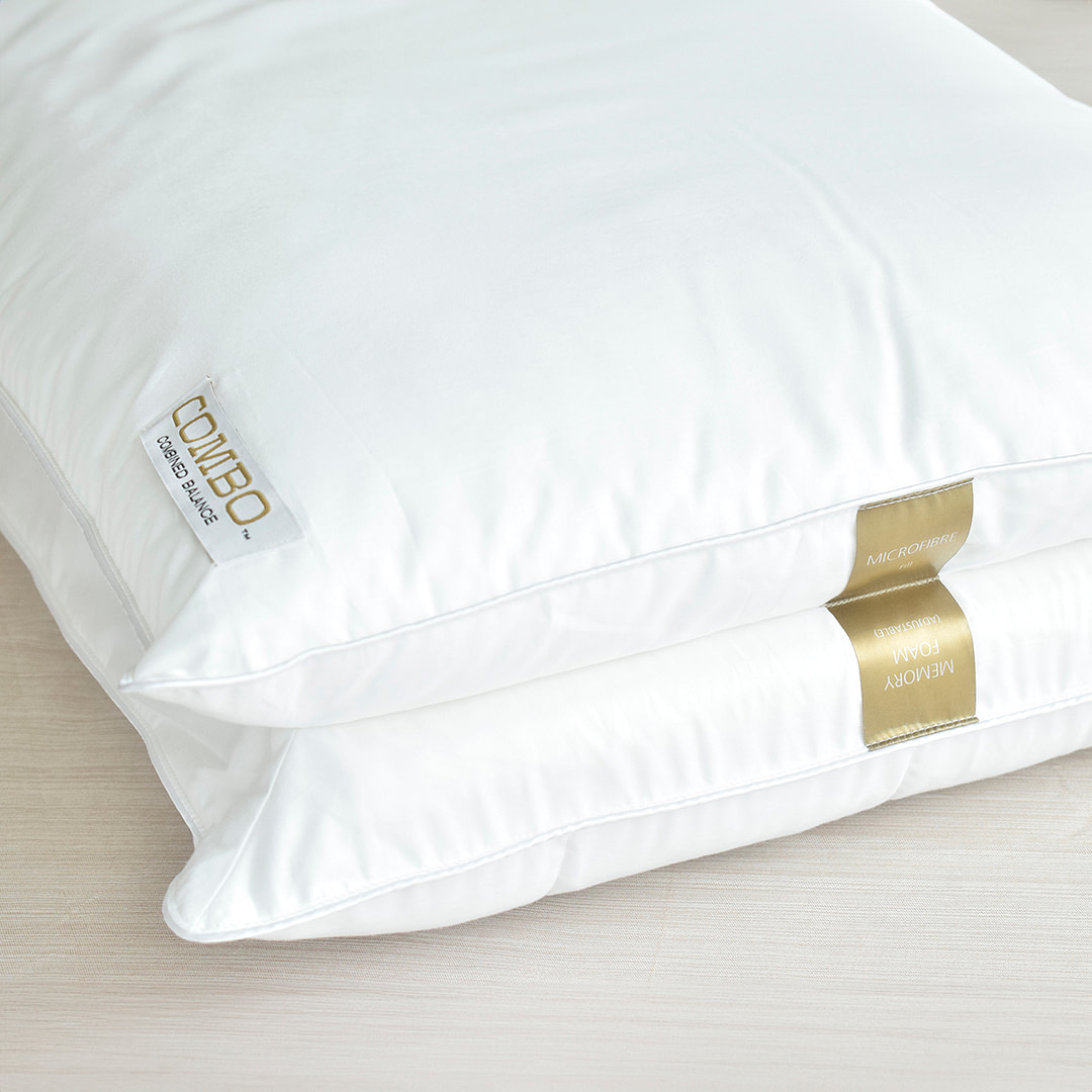 A tall and plush pillow at 18cm, the Combo pillow is a combination of a super soft microfibre pillow on top and a memory foam pillow below. Unlike classic pillows with only fibre, the pillow won’t feel flattened out.